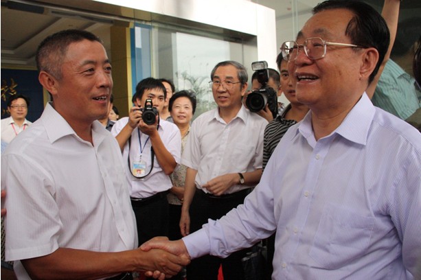 2012年9月6日下午,中共中央政治局委員、全國(guó)政協(xié)副主席王剛在廣西壯族自治區(qū)黨委書(shū)記郭聲琨,政府主席馬飚的陪同下蒞臨中國(guó)電子北海產(chǎn)業(yè)園視察指導(dǎo),中電科技公司董事長(zhǎng)謝慶華在園區(qū)展廳迎接了王剛副主席一行。