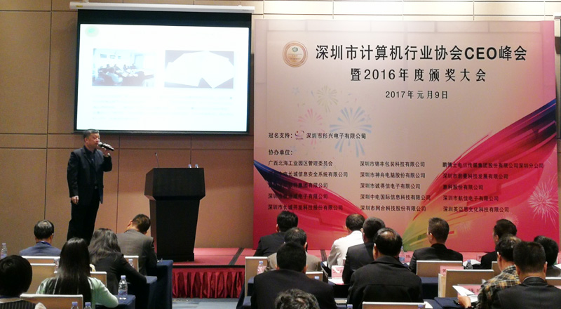 2017年1月9日,深圳市計(jì)算機(jī)行業(yè)協(xié)會(huì)CEO峰會(huì)暨2016年度頒獎(jiǎng)大會(huì)隆重召開,作為北海電子信息產(chǎn)業(yè)的基礎(chǔ)核心、優(yōu)秀產(chǎn)業(yè)園區(qū)運(yùn)營(yíng)商的中國(guó)電子北海產(chǎn)業(yè)園發(fā)展有限公司當(dāng)選深圳市計(jì)算機(jī)行業(yè)協(xié)會(huì)副會(huì)長(zhǎng)單位,索耀宗總經(jīng)理當(dāng)選為協(xié)會(huì)第九屆理事會(huì)副會(huì)長(zhǎng)。