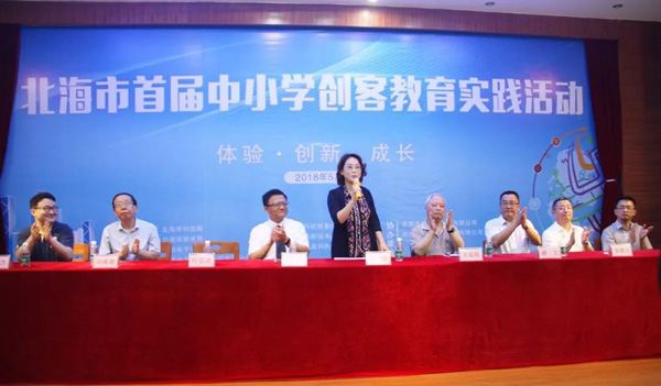 北海市科技局、北海市教育局、中國(guó)電子學(xué)會(huì)、中國(guó)電子北海產(chǎn)業(yè)園主辦的2018年北海市科技活動(dòng)周暨首屆中小學(xué)創(chuàng)客教育實(shí)踐活動(dòng)于5月21日開(kāi)幕,北海市副市長(zhǎng)黃江出席開(kāi)幕式并宣布教育實(shí)踐活動(dòng)啟動(dòng)。