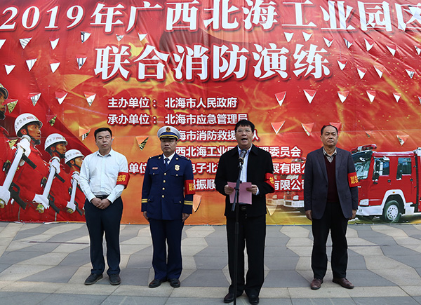 北海市委常委、常務(wù)副市長(zhǎng)陳維致辭并宣布消防演練正式開始